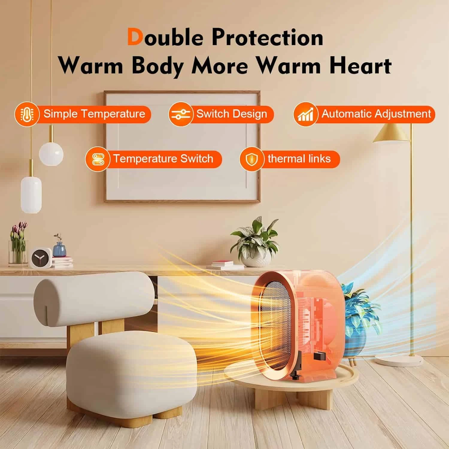 - COMFORTABLE&SOFT – It is a very comfortable space heater. The space heater heats more efficiently with a working power of up to 1200W, smoothes airflow, eliminates air turbulence, provides soft and quiet warmth, and is easy to carry and move. It is very suitable for houses with children and pets.
