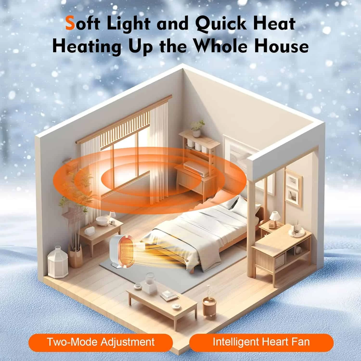 - ENERGH SAVING&HIGH EFFICIENCY – This is a very energy-saving space heater for indoor use. The 1200W portable space heater has two different heating settings (low and high), three second heating, and more uniform heat distribution. You don’t have to waste a lot of money on central heating.