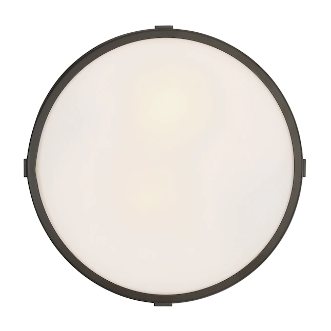 - Features frosted white glass and a bronze finish
