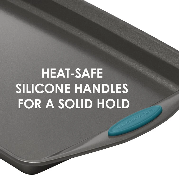 - COLORFUL BAKEWARE: Bake set is oven safe to 500 degrees F with bold-colored, extra-wide grippy handles