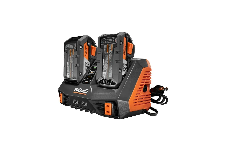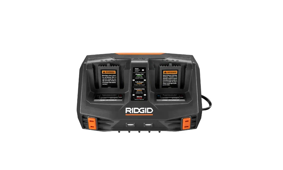 RIDGID AC840094 18V Dual Port Dual Chemistry Sequential Charger with Dual USB Ports