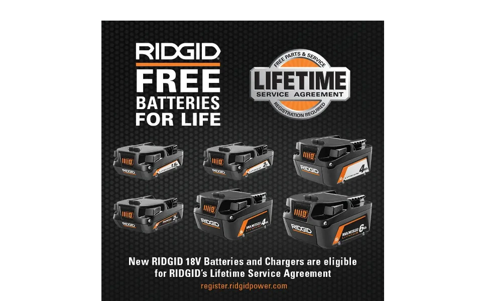 100% Compatible: Works with all RIDGID 18V Batteries, Tools and Chargers - Lifetime Service Agreement with registration within 90 days of purchase
