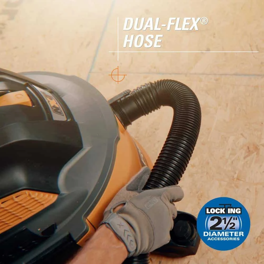 The RIDGID 12 Gal. 5.0 Peak Horsepower NXT Wet/Dry Shop Vacuum was built for pros ready to take their projects to the next level. This vac comes with a 7 ft. hose, general debris filter, wet nozzle, utility nozzle, car nozzle, 2 extension wands and 20 ft. Tug-A-Long Hose. With more power and an advanced design specifically engineered for the pro user, this high-performance vacuum is part of the most powerful line of wet dry vacs RIDGID has ever made. Its redesigned scroll technology gives an increase in power, suction, and lift. The 12 Gal. NXT vac includes 2-1/2 in. locking accessories for a secure fit and the 2-1/2 in. diameter size resists clogs. Onboard storage for hose and accessories gives quick access to attachments. 2 locking extension wands extend reach while the utility nozzle cleans larger areas. Use the wet nozzle for liquid spills and the car nozzle for detailed cleaning. Plus, this model includes the extra-long 20 ft. hose for more reach, flexibility, and durability. The blower port adds versatility and allows you to use hose to blow leaves, grass clippings and more. This vac features our patented Qwik Lock filter that makes installing or removing your filter quick, easy, and secure. Pro Tip: Add a RIDGID shop vac filter (VF4000, VF5000, VF6000, VF7000 or VF8000; sold separately) to a RIDGID shop vac to maintain the power of the vac and extend vacuum life and a dust collection bag (sold separately) to help with quick cleanup and disposal.