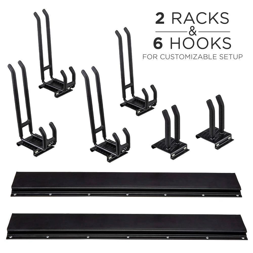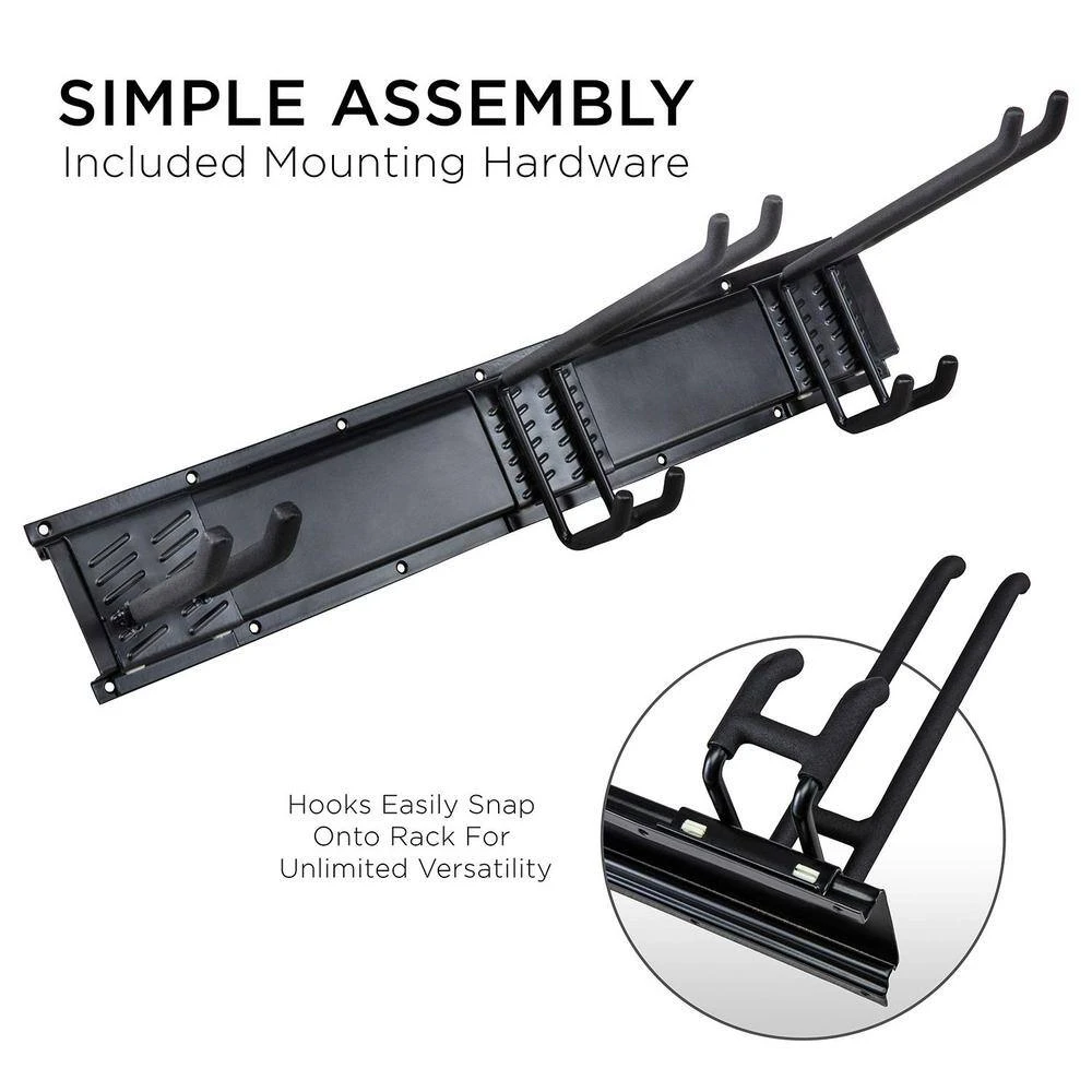 With the garage tool rack from RaxGo, homeowners can neatly organize their accessories in the most efficient manner possible. The easy-to-install tool racks for garage walls system safely mounts to most surfaces and features 6 adjustable hooks. Accommodate a variety of items with this rake holder wall mount. Whether you’re tidying a commercial shop, or looking to yard tool holder, stop racking your brain! Take back your garage by adding a RaxGo garage tool organizer rack to your cart today!