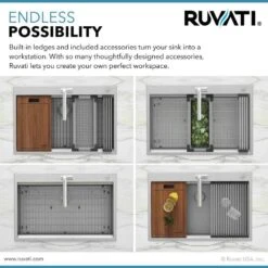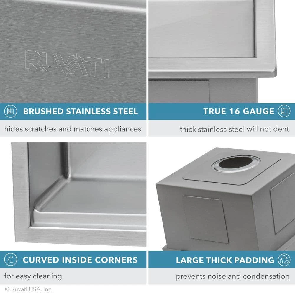 Ruvati RVH8003 Drop-In Stainless Steel 33 in. Workstation Ledge Topmount Kitchen Sink 16-Gauge Single Bowl