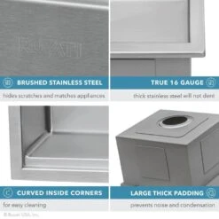 | Features | Corrosion Resistant, Heat Resistant, Insulated, Sound Dampening, Workstation | Included | Bottom Grids, Mounting Hardware, Strainer Basket |