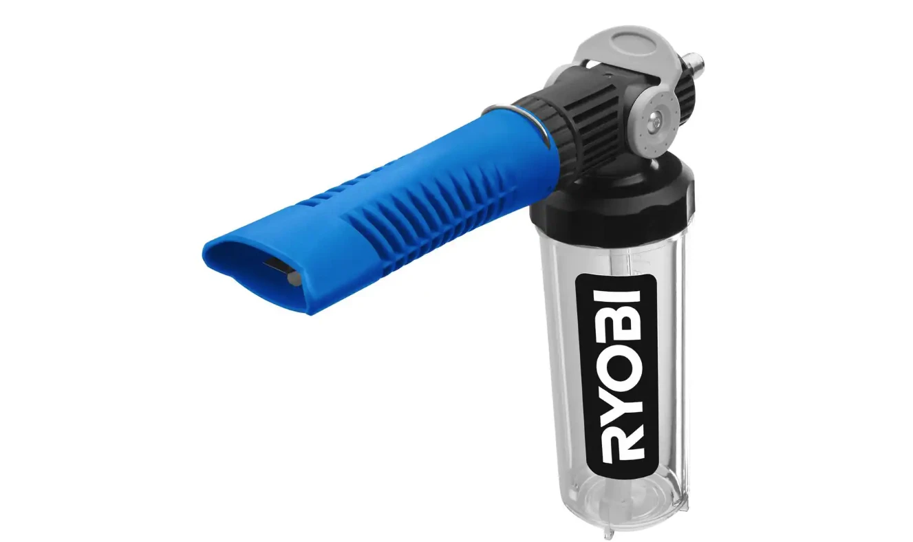 - The RYOBI Foam Blaster features an On/Off foam control lever