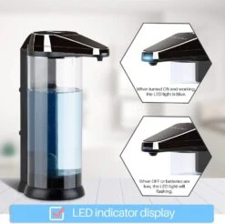 - Water-resistant battery-operated automatic soap dispenser with 17 oz. capacity container. The 4*AA alkaline batteries are not included.