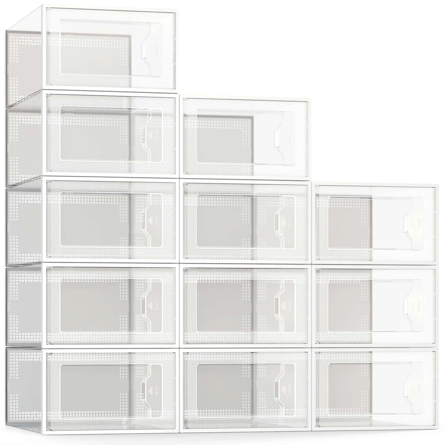 SEE SPRING Large 12 Pack Shoe Storage Box, Clear Plastic Stackable Shoe Organizer for Closet