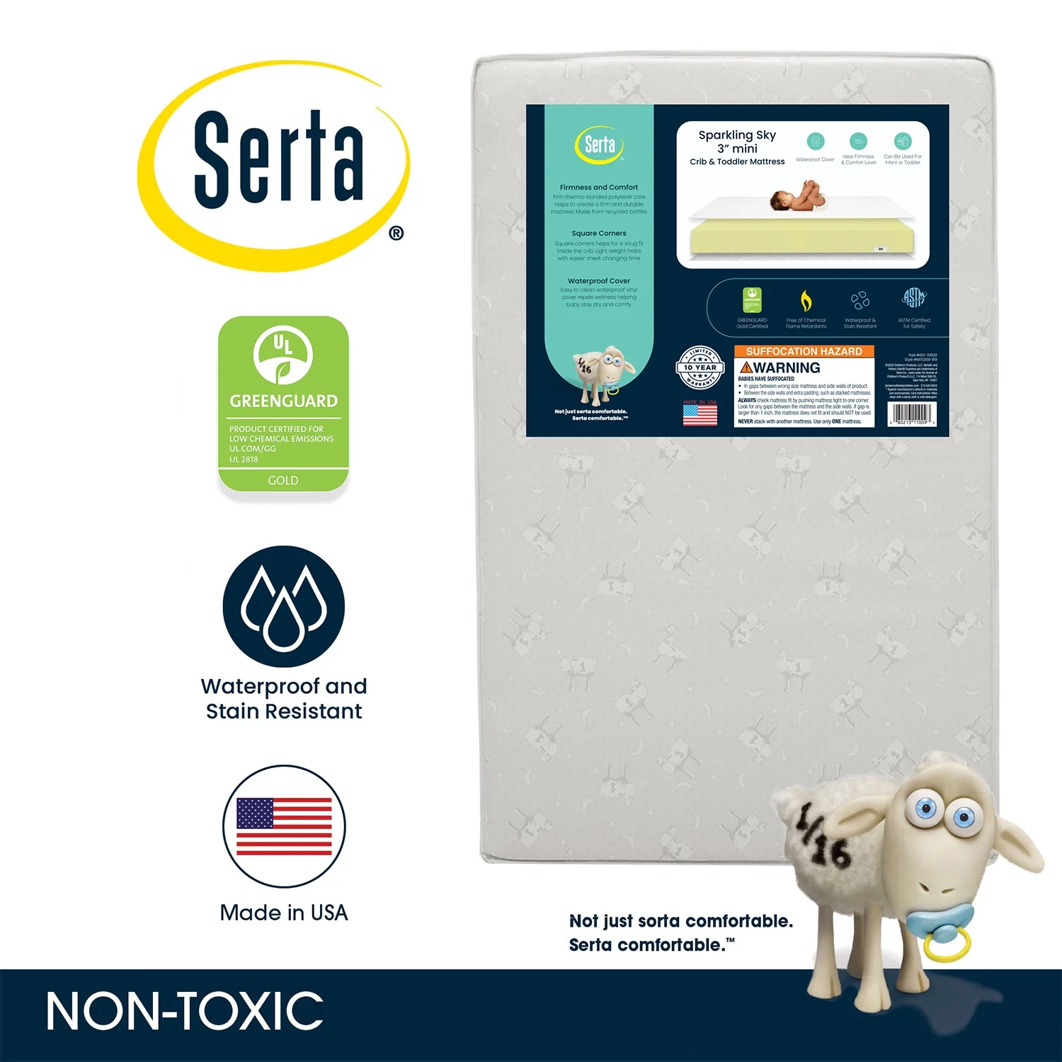 Serta Sparkling Sky 3″ Mini/Portable Crib & Toddler Foam Mattress, GREENGUARD Gold