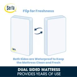Serta’s Sparkling Sky 3-inch Mini/Portable Crib Mattress was designed with your baby’s health, safety, and comfort in mind. It delivers all the benefits of a full-sized crib mattress in the convenience of a smaller size to fit mini cribs and portable cribs. Built with a firm, hypoallergenic fiber core made from recycled bottles, it delivers the perfect firmness level for newborns to grow and develop while helping save over 150 bottles from the landfill—great for babies and great for the environment! The waterproof vinyl cover blocks wetness to aid in preventing mold, mildew and odor, and is easy to clean, just wipe clean with warm water and mild soap. And that’s not all, the Sparkling Sky 3-inch Mini/Portable Crib Mattress by Serta is extremely lightweight which makes changing the sheets or flipping the mattress a cinch. Fits most mini and portable cribs (NOT designed for standard cribs or Pack ‘n Plays). All Serta crib mattresses are GREENGUARD Gold Certified and meet the strictest standards offered by the Greenguard environmental Institute, which recognizes products with low chemical emissions, contributing to improved indoor air quality.