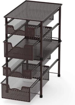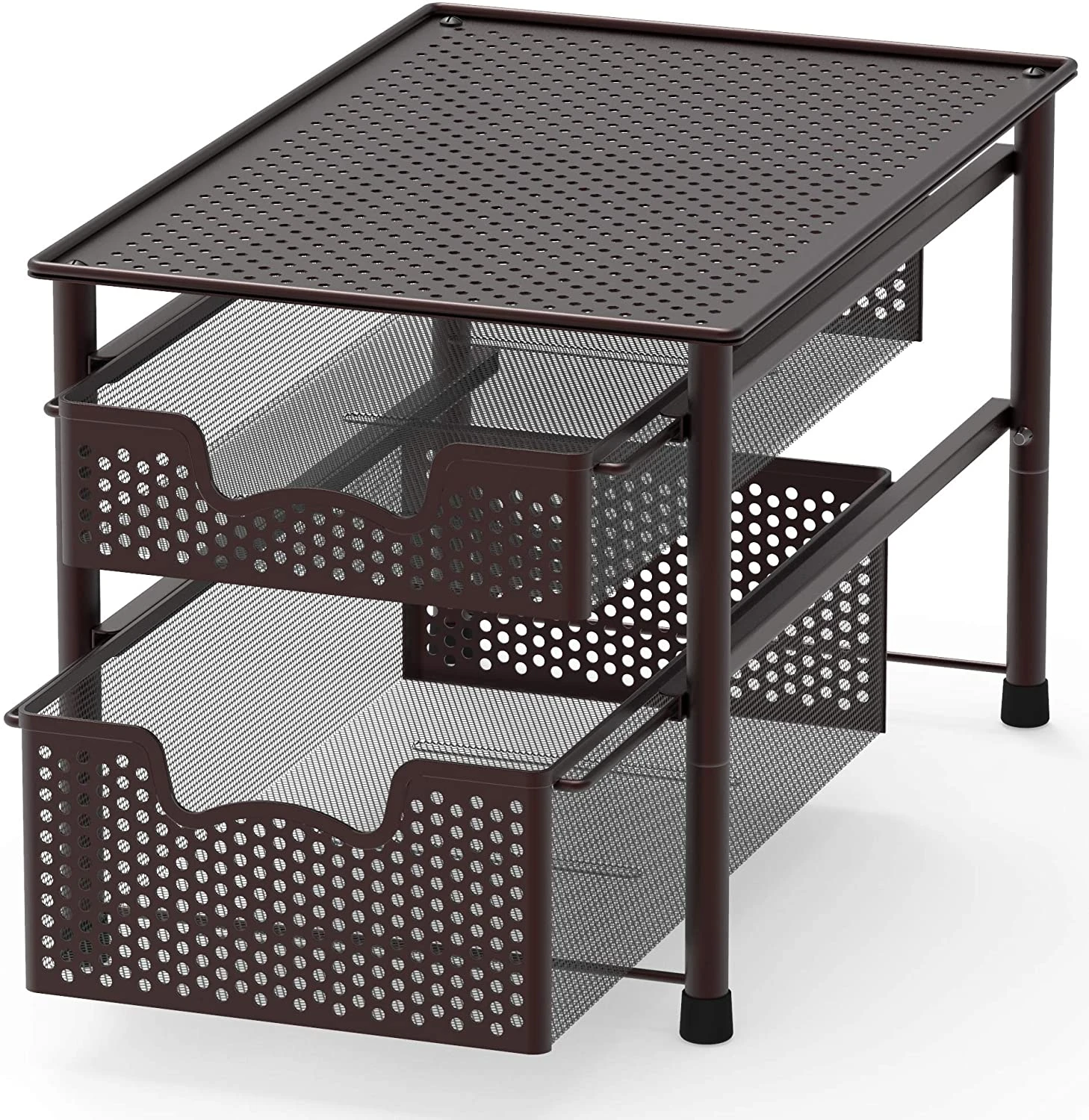 Simple Houseware Stackable 2 Tier Sliding Basket Organizer Drawer, Bronze