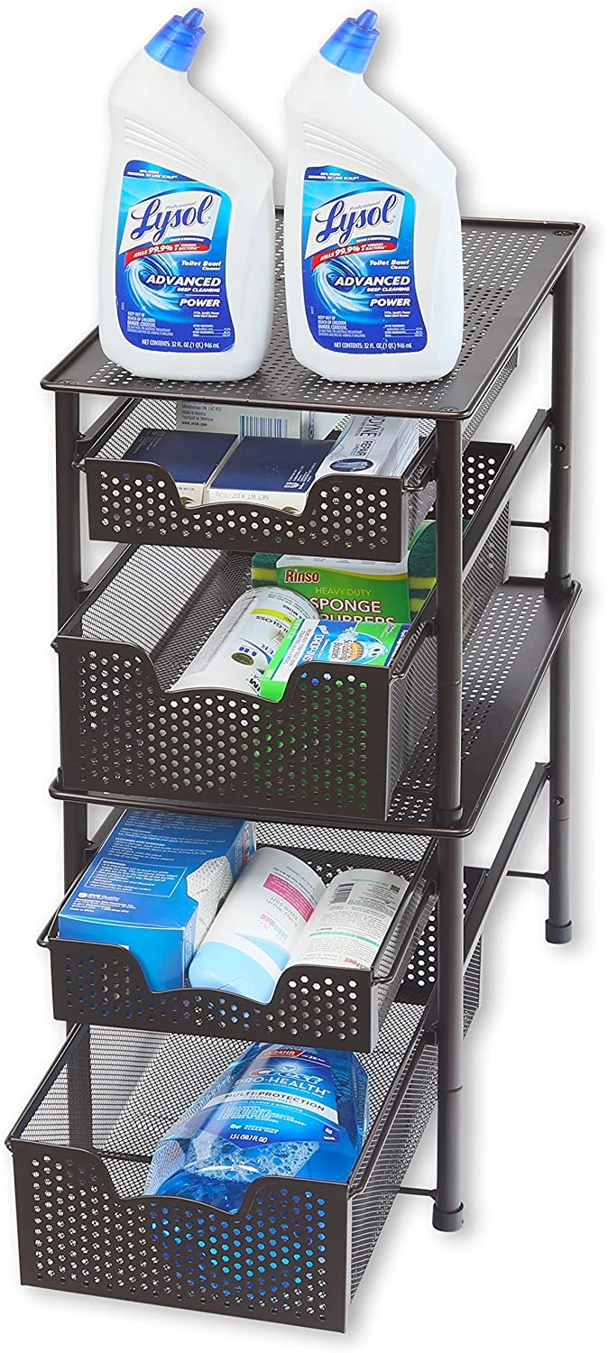- Organize any cabinet with this convenient sliding basket organizer. Its design makes it perfect for the pantry, under the sink, or on your countertop.