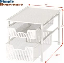 Simple Houseware Stackable 2 Tier Sliding Basket Organizer Drawer, White