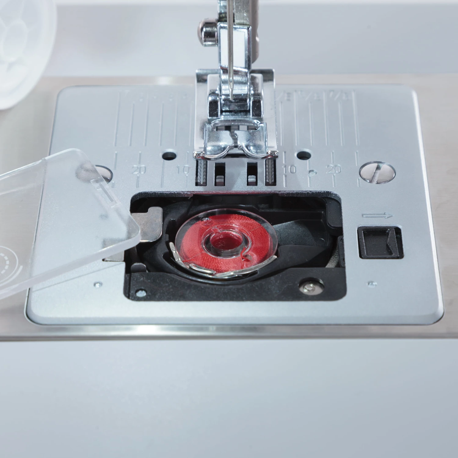 - TOP DROP-IN BOBBIN WITH CLEAR VIEW COVER: Jam-proof bobbin and clear bobbin cover plate are both transparent, making it easy to monitor your thread supply. The bobbin is easy to wind and easy to insert as well.