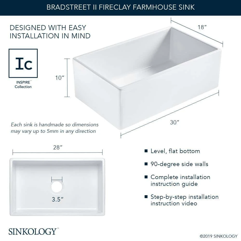 SINKOLOGY SK499-30FC Bradstreet II 30 in. Farmhouse Apron Front Undermount Single Bowl Crisp White Fireclay Kitchen Sink