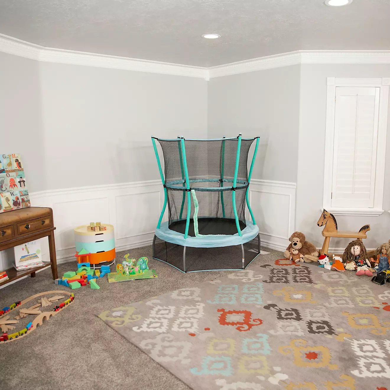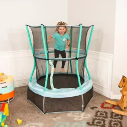 Let the kids bounce safely on the Skywalker Trampolines Classic Mini 48 in Round Trampoline with Enclosure. This kids’ trampoline is constructed with a padded, steel frame that’s as sturdy as it is soft, and a woven polypropylene jump mat that grips. The enclosure net is sewn directly to the jump mat to reduce gaps. The enclosure has a zippered entrance and interlocking handlebars for little hands to hang on to.