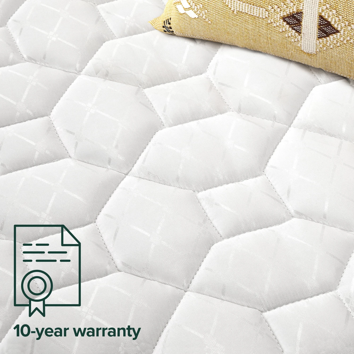 If even and perfectly cushioned support strikes your fancy, then the Foam and Spring Mattress is your ticket to many well-rested mornings to come. Featuring a fiber quilted cover, CertiPUR-US Certified high-density and Visco latex foams, and a base layer of heavy duty steel innersprings, this mattress is equipped with the right blend to let your joints and spine rest comfortably. With a touch of enveloping softness from our Visco latex foam backed by reliable traditional innersprings, this adult mattress is especially ideal for stomach sleepers and those who enjoy a reactive feel. Rolled and shipped in a box that arrives at your doorstep with a 10-year worry-free warranty in tow, it’s equipped with just about everything you need to enjoy smooth snoozing. So all that’s left for you to do is tuck in and close your eyes, no sheep-counting required.