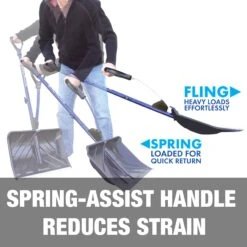 - [SPRING-ASSIST]: Handle acts as a fulcrum that changes the mechanics of shoveling along with reducing strain