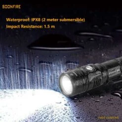 Soonfire Cree LED 1000 Lumens Flashlight, Rechargeable Waterproof Compact EDC Law flashlights, Black