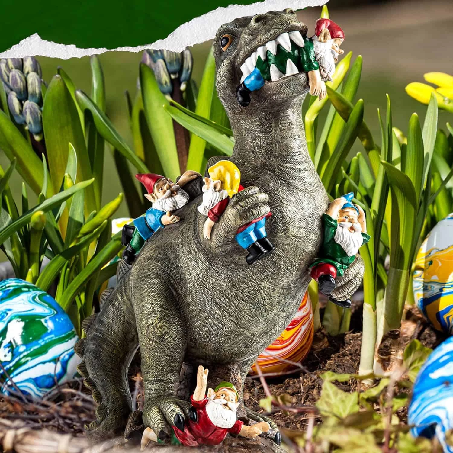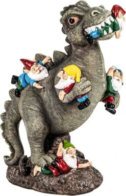SOWSUN Dinosaur Gnomes Garden Statues Outdoor Decor Birthday Gifts for Mom Funny Gifts for Yard, Patio Dinosaur Eating Gnomes Sculptures House Warming Gifts New Home Decor