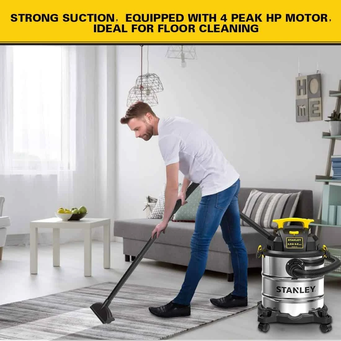 Stanley SL18116 Wet/Dry Vacuum, 6 Gallon, 4 Horsepower, Stainless Steel Tank, 4.0 HP, Silver+yellow