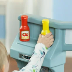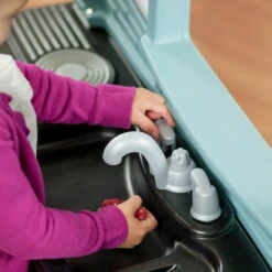 The Step2 Best Chefs Kitchen is a toddler playset with fresh colors meant to complement any play area! This kid’s kitchen was designed for girls and boys ages 2 to 6 years means the play experience will last for years. This play kitchen has many realistic features such as a stove top burner that makes sounds, clicking knobs, oven and refrigerator doors that open and close to add to the realism. Additional realistic features this kid’s playset was designed with include a stainless-steel sink and hardware, tile back splash and lots of storage space for storing the 25 accessories included. A few of the kitchen included are a plastic coffee pot, silverware, plates and more! The accessories can be hung on hooks or stored in either the oven or refrigerator. Best of all, this play kitchen is made with sturdy plastics and comes with a 2-year limited warranty!