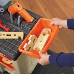 Watch as your little boy or girl build and repair their favorite toys with the Step2 Handyman Workbench! This kid’s tool bench can be used as an indoor or outdoor playset and provides a large work surface for all sorts of creative projects. Whether they are building a bookshelf or fixing a cabinet your kids will have fun playing with the 30-piece play tool accessory set (specifically the play drill)! Watch your toddler mimic you by trying to fix a sticky door using the included plastic hammer and screwdriver. As play time winds down this toddler tool bench includes four storage bins to assist with easy clean-up. The Handyman Workbench is designed for children ages 3 and up and is very sturdy. Lastly, this kid tool bench is made from strong plastics and comes with a 2-year limited warranty!