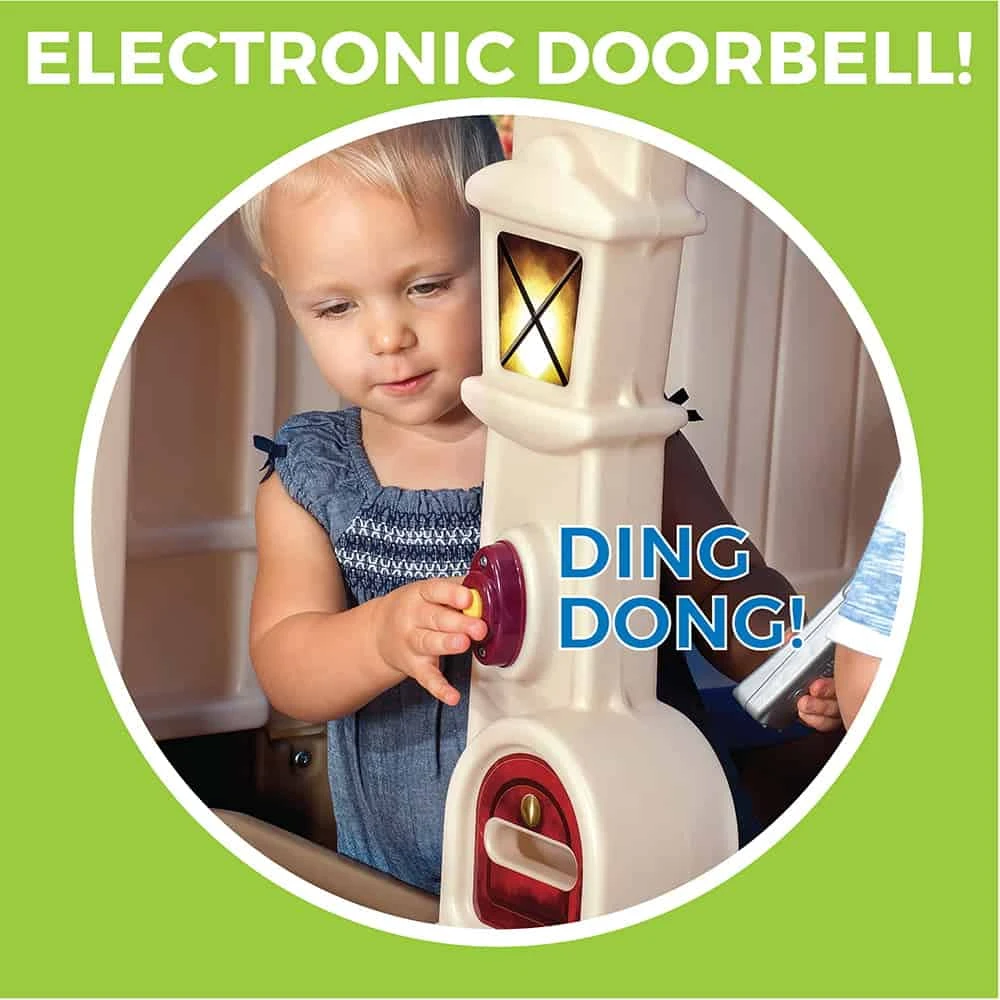- Toddlers will enjoy ringing the doorbell (requires 2 “AA” batteries, not included) and passing mail through the molded-in mailbox.