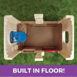 The Step2 Neat & Tidy Cottage Playhouse for toddlers to school-aged children comes in multiple colors: blue, brown and pink tops. The Neat & Tidy playhouse collection is designed with realistic stone and wood finishes, can be setup as an indoor or backyard playhouse and includes many realistic features your children will play with for hours at a time! This kids indoor and outdoor playhouse is the blue playhouse version and features an open design to allow for multiple kiddos to play in at a time. The Dutch door and shutters both open and close to add to the playtime experience. While you little boy or girl is inside this beautiful cottage they will find a pretend fireplace to keep them warm, wall clock so they won’t be late going to meet up with their neighborhood friends, built-in shelves to store their many collectibles and kitchen setting that includes a sink, table and seat. But this little house also offers additional play experiences on the outside which include a grill to barbecue some burgers, molded-in flower box for planting real or fake flowers, exterior pass-through mailbox and realistic doorbell that makes sounds (requires 2 “AAA” batteries not included). But can’t forget this Step2 playhouse also comes with a pretend plastic cellular phone in case your toddler or school-aged child wants to call a friend or order a pizza. When Step2 designed this affordable playhouse for kids to play with year-round we made sure to use quality and sturdy plastics to allow this cottage to be weather resistant and last for many years. Therefore, it doesn’t matter if this is your child’s first playhouse (or replacement) we are sure your kiddo will enjoy playing in the Neat & Tidy Cottage Playhouse made by Step2. Adult Assembly Required.
