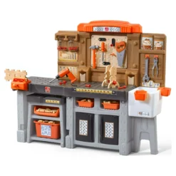 The Step2 Pro Play Workshop and Utility Bench kid’s indoor and outdoor playset is a little builder’s dream! If you are looking for a construction workshop or sturdy workbench for kids aged 3 and up for a boy (or girl) this playset is a must have! With such a large workbench space, pull-out utility bench, and tons of included accessories, multiple kids can explore woodworking together for fun social play. Kids can use the real working spring-action vise to hold the Durafoam™ pieces that look just like real wood as they build their creations! Your little one will always have the right tool for any job with the included battery-operated pretend power drill (requires 2 “AA” batteries, not included) and hammer, hand saw, table are just a few of the accessories included in this 75-piece accessory playset. Pretend play comes to life through fun building projects that flex little builders’ creativity and fine motor skills. And, this workbench playset includes realistic storage space like the pegboard, jars, and bins, just like real workshops! The Pro Play Workshop and Utility Bench made by Step2 will last for a long time, is made with sturdy plastics and even comes with a limited warranty. Adult Assembly Required!