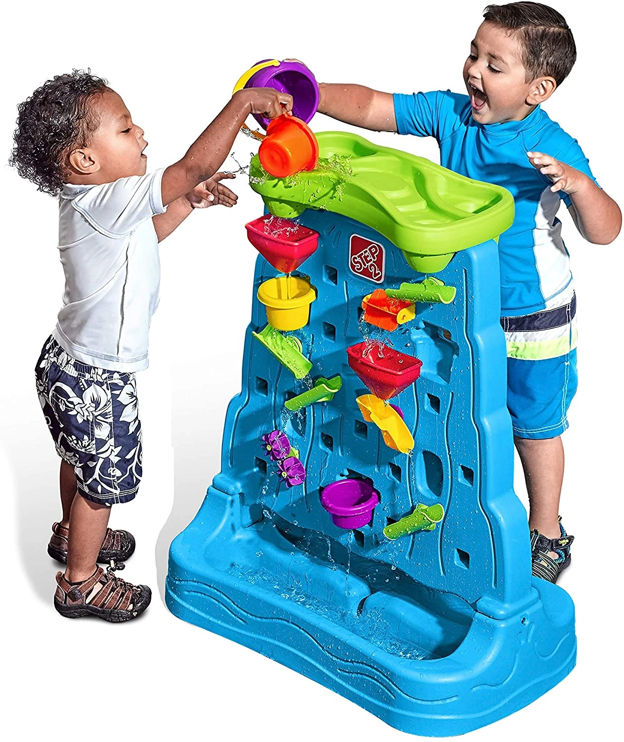 Double your outdoor play fun with the Waterfall Discovery Wall by Step2. Little water lovers will enjoy scooping the water and watching as it cascades through the spinners, zigzags and funnels on this double-sided water wall. Kids can allow their imagination to run wild as each water maze piece can be moved to create a new design.