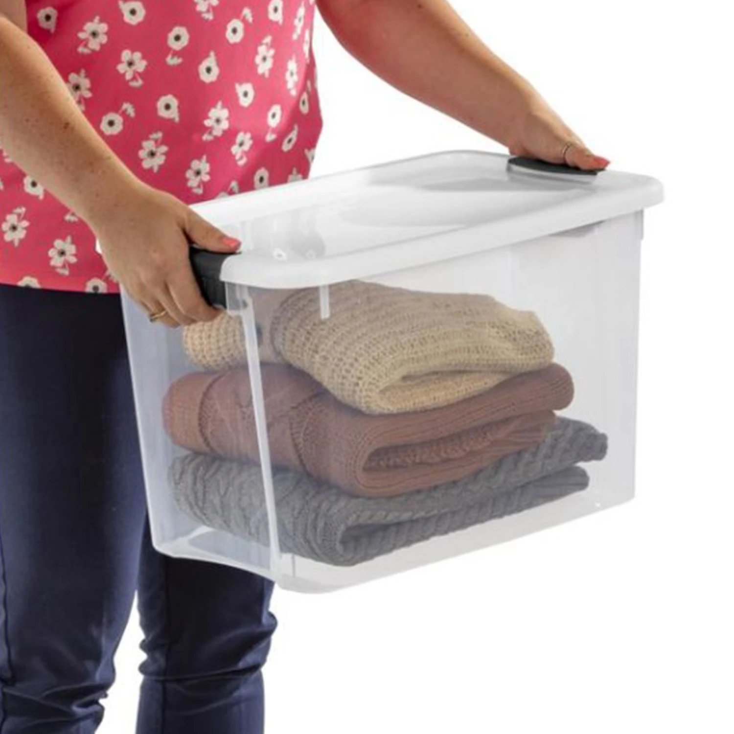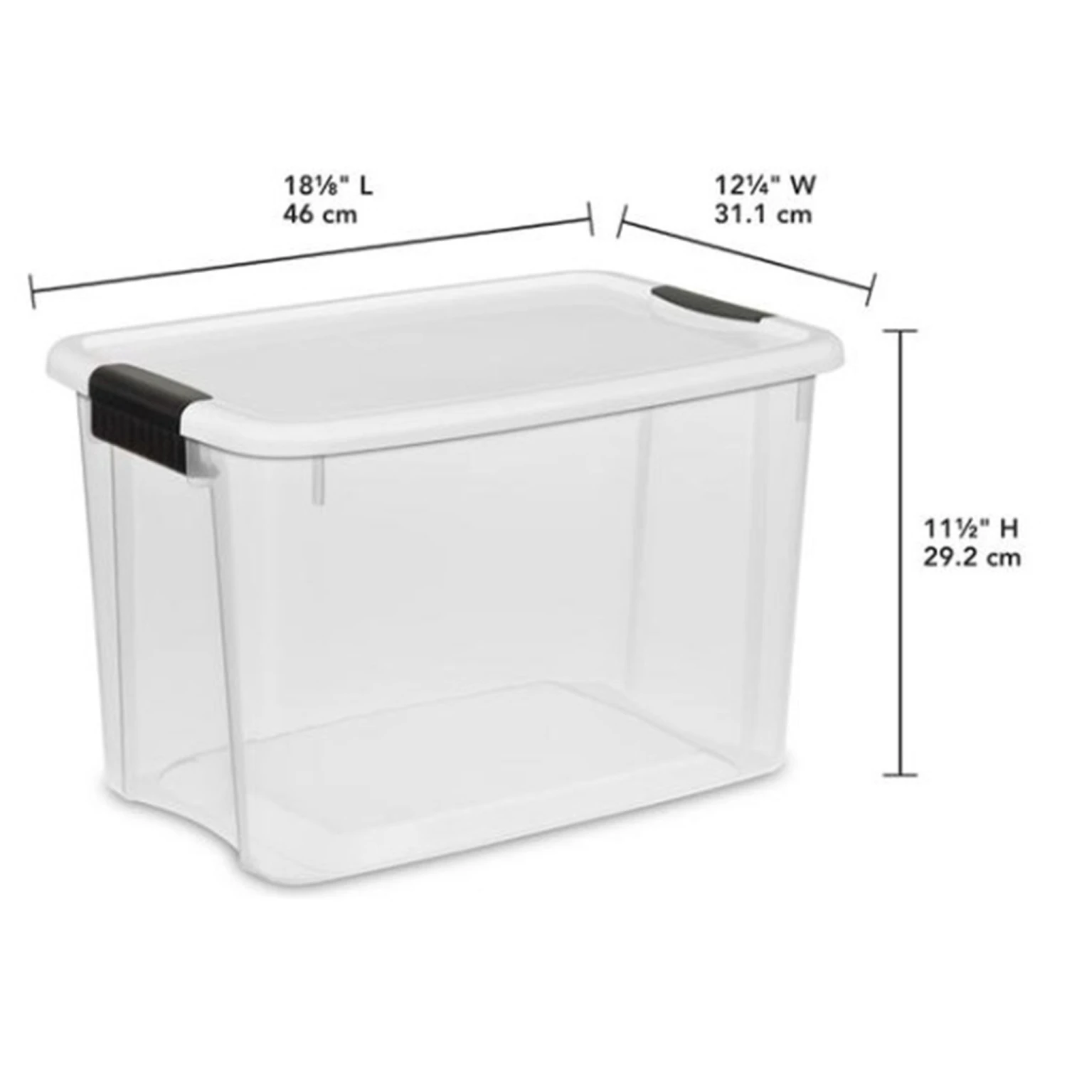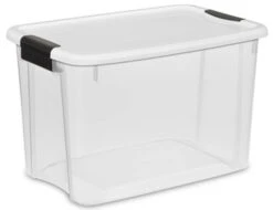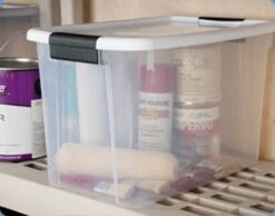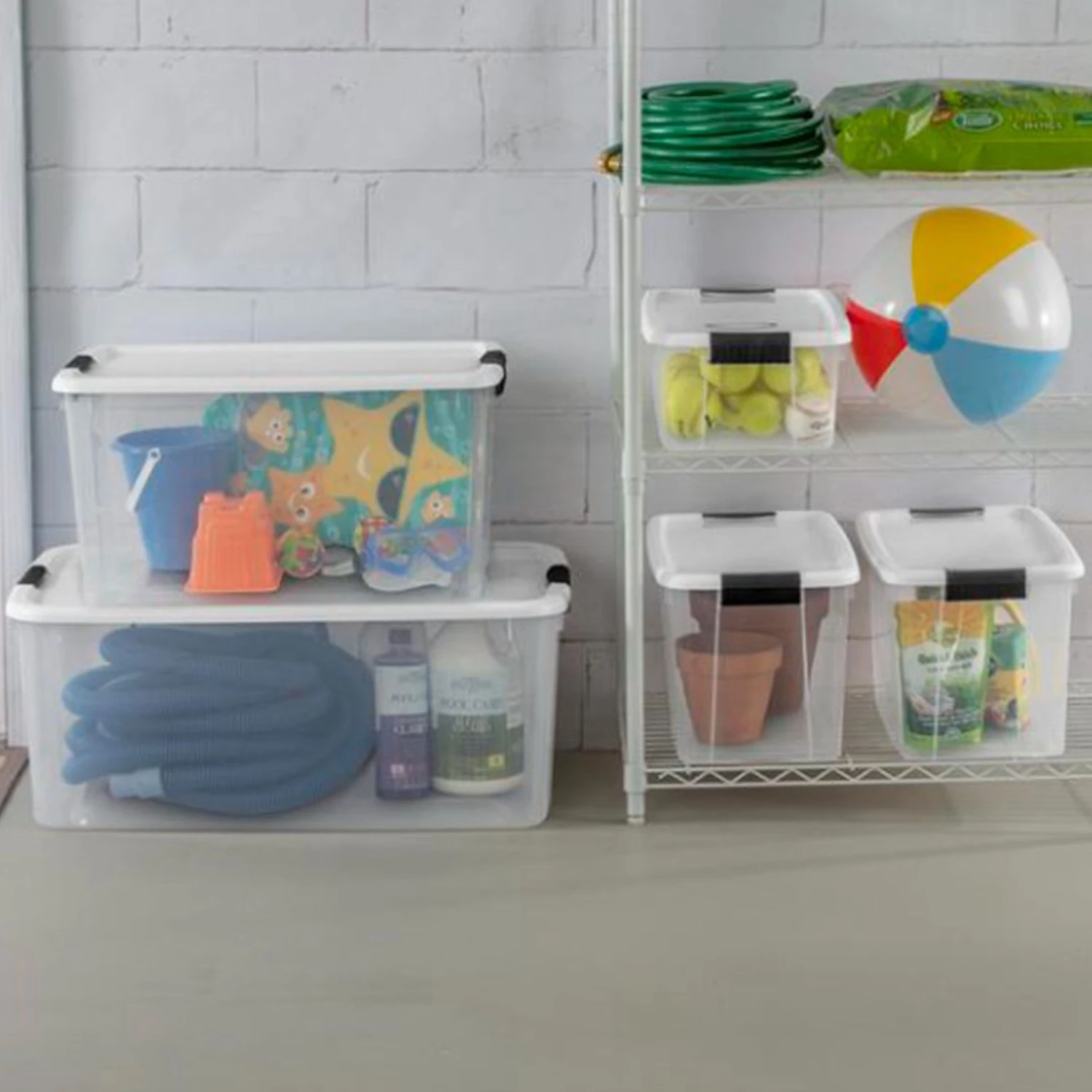 - Sterilite latch clip storage bin is the perfect size for boots, accessories, small household tools, and supplies, with a clear base allowing quick viewing of contents