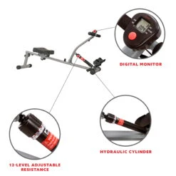 Sunny Health & Fitness Rowing Machine Rower Exercise for Home Cardio Workouts, Digital Monitor, Adjustable Resistance, SF-RW1205