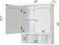 TaoHFE Bathroom Wall Cabinet with 2 Door Adjustable Shelves,Over The Toilet Storage White Wall Mounted Medicine Cabinets for Bathroom Laundry Room Kitchen