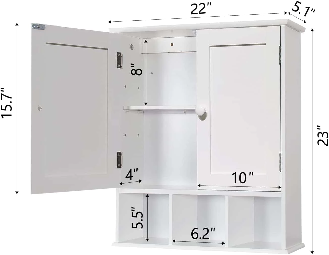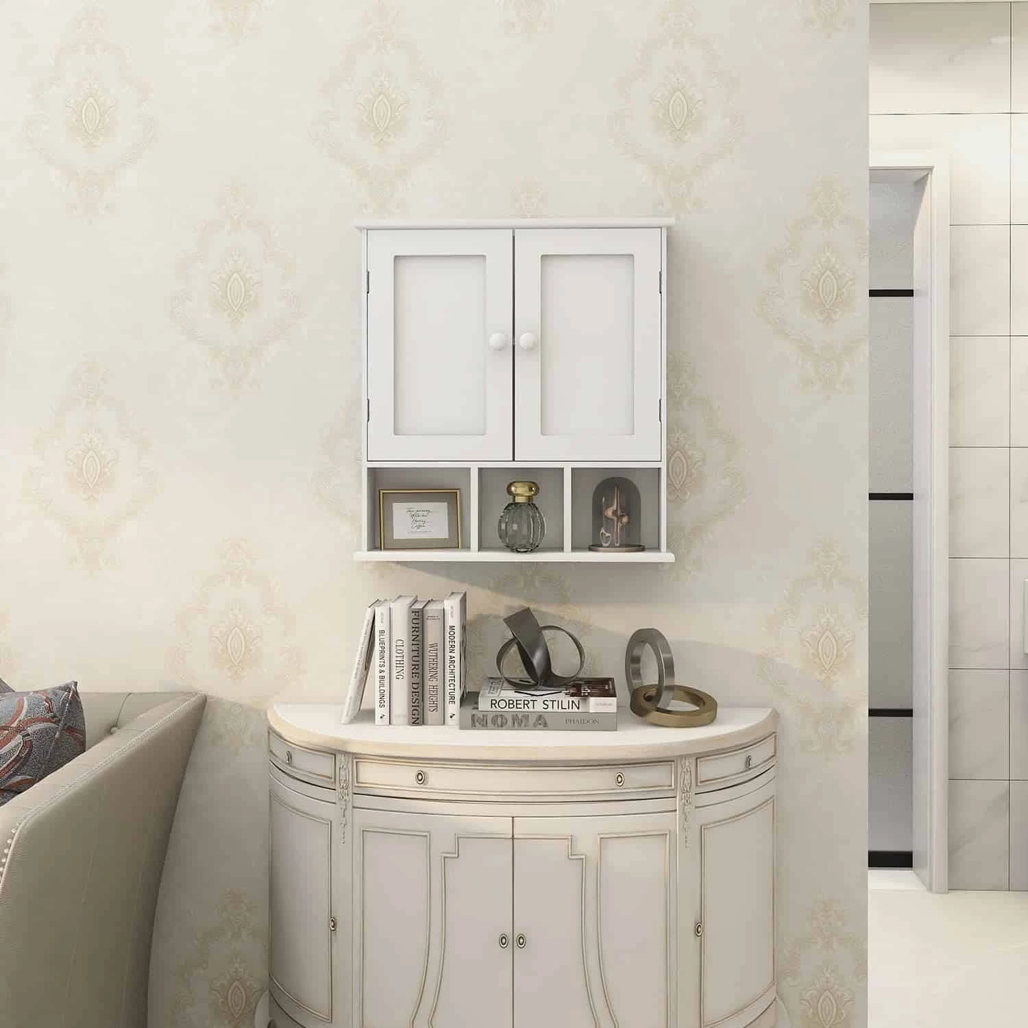 Want to design a space-saving and beautiful cabinet for your bathroom, kitchen or hallway? TaoHFE bathroom cabinet with 2 doors and 3 open shelves, this wall-mounted cabinet will bring style to your home. The combination of exquisite style and white color makes this medicine cabinet coordinate with various decorative styles.