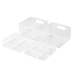 Want to get organized but haven’t decided how or where? We have you covered! This starter pack includes three sizes of our most essential item, bins! The Home Edit 8 Piece Multipurpose plastic storage system is perfect to use as kitchen storage, toy storage, classroom storage, spice rack, crafts storage, and much more. This storage bin system is a must have. From tackling the toy room to freshening up the fridge, use The Home Edit Multipurpose storage system to create systems in any countless number of ways! This organizational storage container system set includes 2 : Large Bins (10” x 10” x 6”), 2 Large Insert Bins (9.37” x 4.68” x 2.95”), 2 Medium Insert Bins (6.24” x 4.68” x 2.95”), and 2 Small Insert Bins (4.68” x 3.12” x 2.95”)