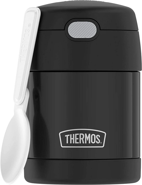 THERMOS FUNTAINER 10 Ounce Stainless Steel Vacuum Insulated Kids Food, Black, is vacuum insulated to keep hot foods hot and cold foods cold-and since it’s designed for kids it’s also colorful and fun. Send them to school with Mom’s homemade soup so they can enjoy it fresh and hot at lunch time.