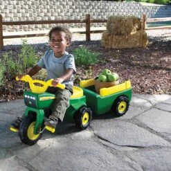- Let your child get in on the hauling action with this John Deere ride-on toy set
