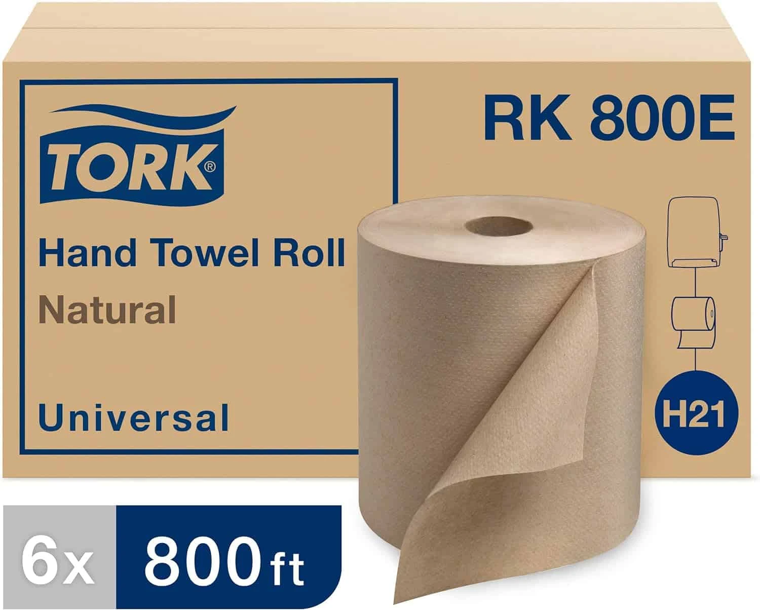 Tork Paper Towel Roll Natural – Universal Hand Roll, Natural Paper Towels with Brown Tissues made of 100% Recycled Fiber, 6 Rolls x 800 ft, Compatible with H21 Dispenser, RK800E