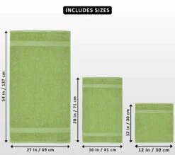 - Set of 8- Our economic set of towels contain: 2 bath towels measuring 27 x 54 inches each; 2 hand towels of 16 by 28 inches each; and 4 washcloths of 12 inch by 12 inches each Enjoy a spa like experience with our luxuriously soft and absorbent towel set.