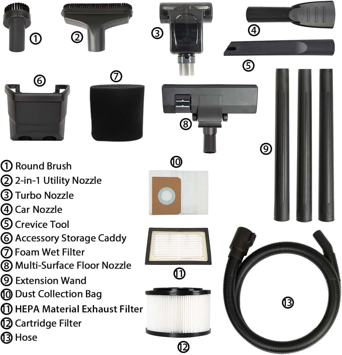 | Filter Type | Foam, HEPA, Cartridge | Included Components | HEPA Filter |