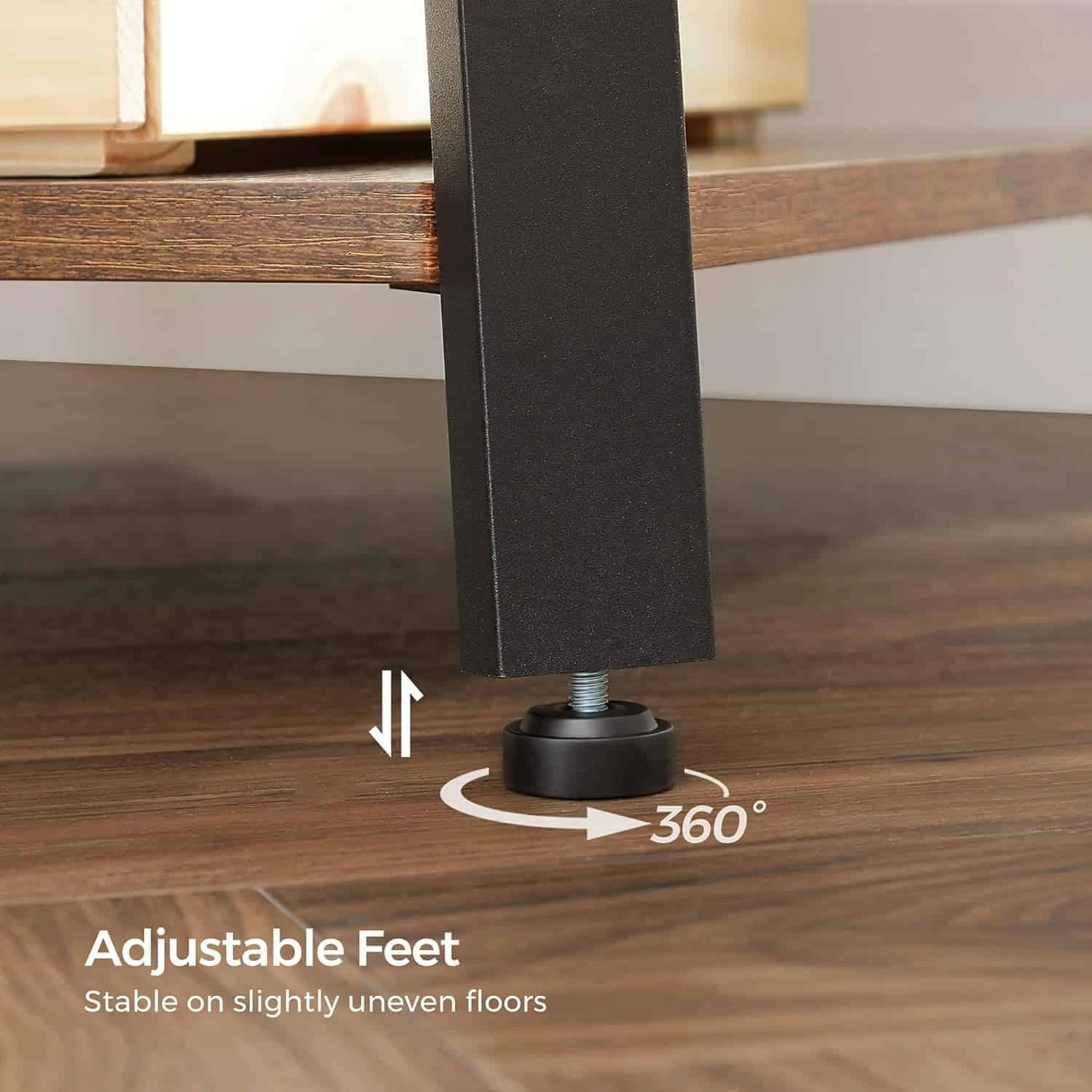 Hang your purses, coats, or scarves up on the 8 dual hooks around the stand. The 3 shelves corral a key bowl, storage bins, or shoes in, what’s not to love? The adjustable feet ensure excellent stability even on slightly uneven ground.