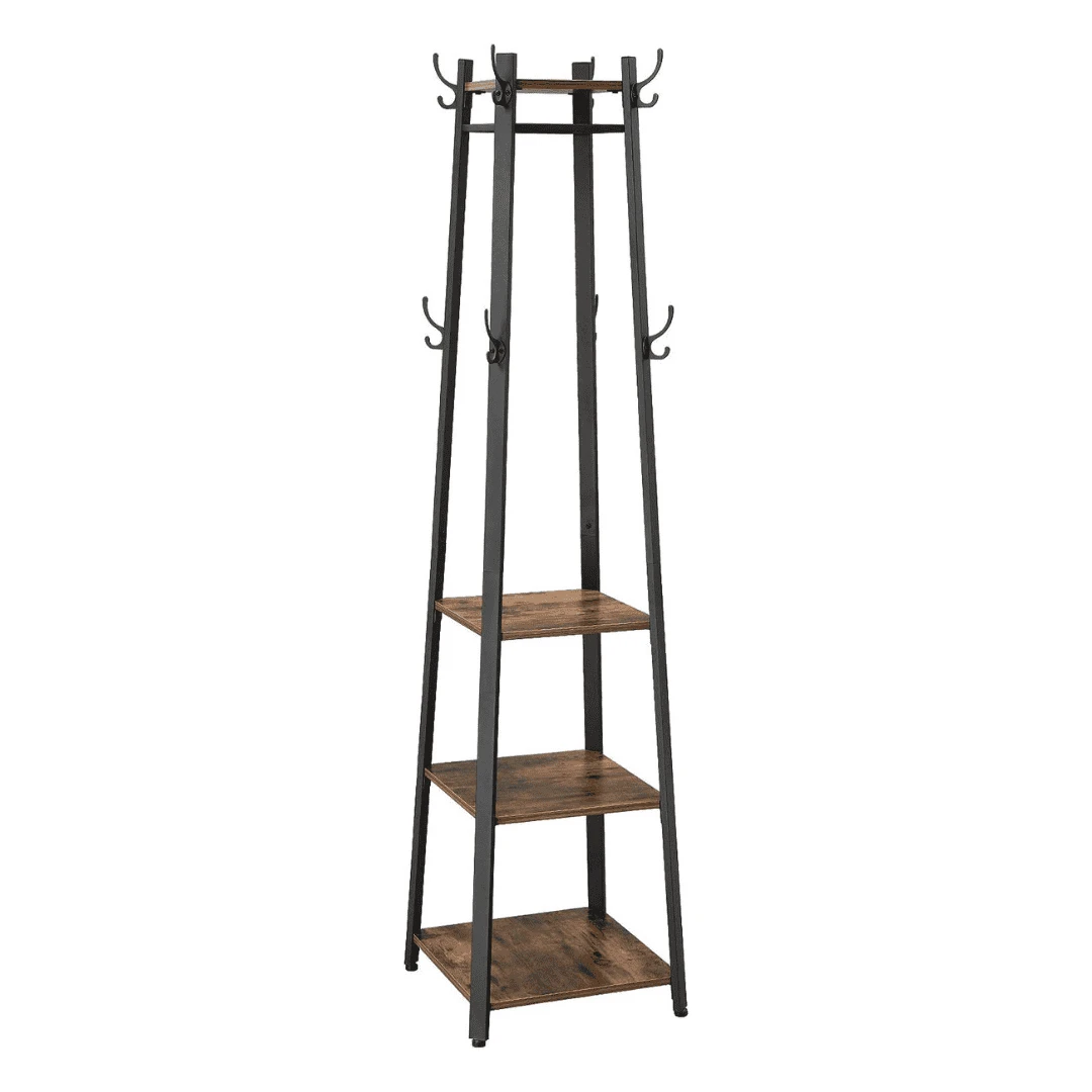 VASAGLE ALINRU Coat Rack with 3 Shelves, Stand with Hooks for Scarves, Bags and Umbrellas, Steel Frame, Industrial Style, Rustic Brown and Black ULCR80X