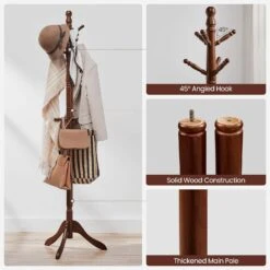 - Details Matter: The traditional coat stand design boasts rounded hooks, a turned wood pole, and a curved base, giving your entryway a classy, time-honored look; the solid wood frame has a natural texture that plastic just doesn’t offer