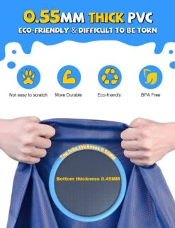 - MORE THICKNER MORE DURABLE: The dog splash pad is 0.55MM, which is thicker and more durable than other 0.25mm splash pads, so pets dog and children can play on it without worrying about being damaged by the paws of the pet. Tip: Pets need to trim their nails first when playing water mat.