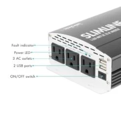 Wagan Tech AC Inverter 1500-Watt. Our AC Inverter 1500-Watt is high output, compact, and slim; hence the reason it is in our Slimline family of power inverters. We have dubbed this line Slimline as all of the inverters are high performance but as slim and compact as possible. Featuring 3 US standard AC outlets, Power and fault LED Lights, USB Power Ports, Power switch and thermal cooling fans, the AC Inverter 1500-Watt is ideal for your high power needs. Features, taking cues from its big brother, the AC Inverter 1500-Watt is small in size, but offers huge performance. 1500-Watt of TrueRated power, 3 AC receptacles (wall power outlet) as you’d find in your home, 2 USB Power Ports, thermal cooling fans, and a slew of safeties built in, the AC Inverter 1500-Watt is exactly what you have been looking for.