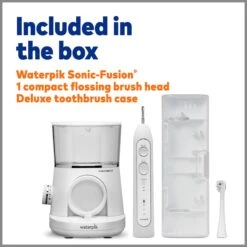 - In the Box: Waterpik Sonic-Fusion 2.0 White (SF-03), Compact Replacement Flossing Brush Heads (SFRB) with covers, Premium Toothbrush Case