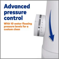 - Features: Patented flossing brush head, 10 pressure settings, a contemporary compact design, 15-ounce covered reservoir with 60+ seconds of water capacity, 2-minute timer with 30 second pacer, and a premium toothbrush travel case