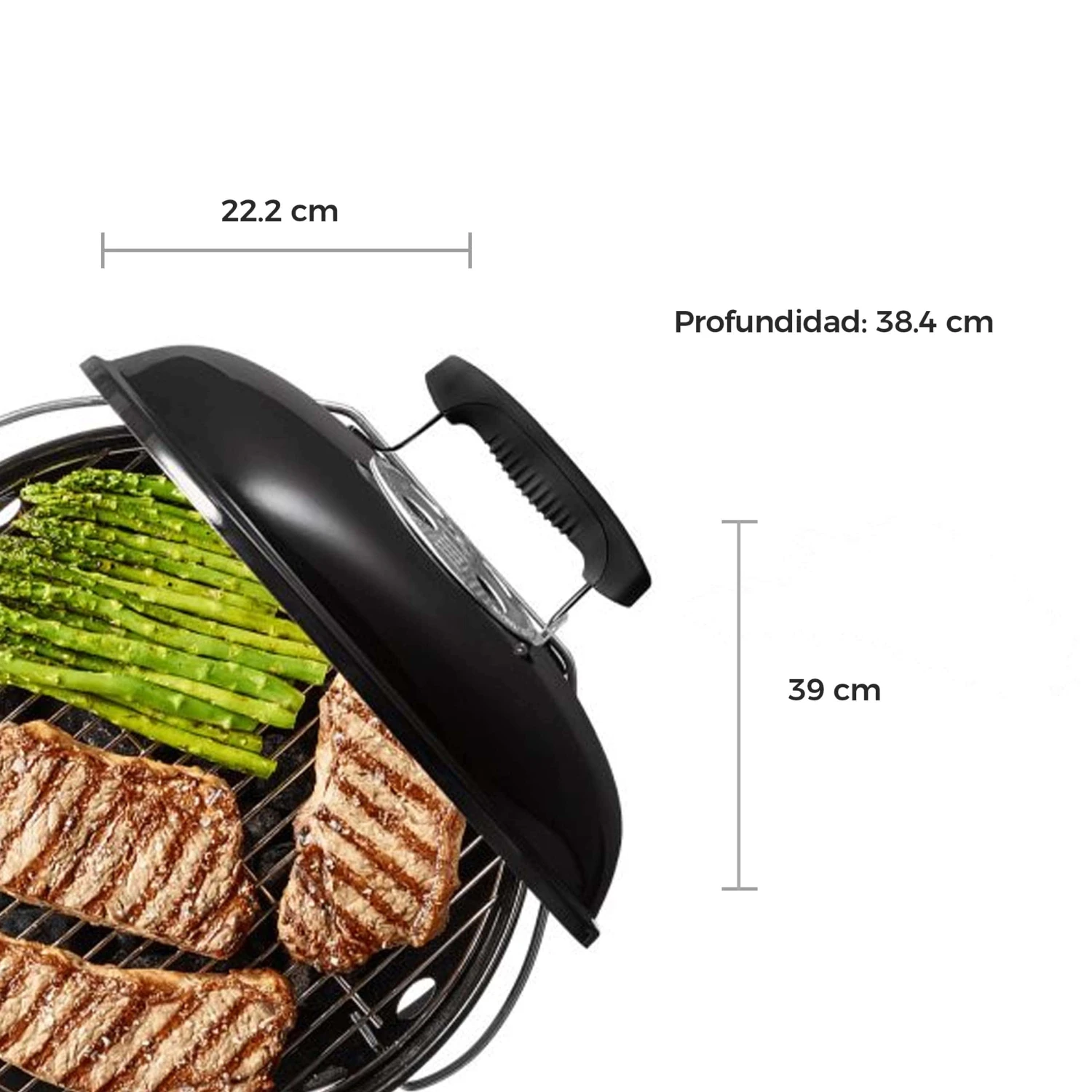 - Durable plated steel cooking grate retains heat and is easy to clean. Dimensions – Lid closed 17 H x 14.2 W x 14.5 D inches